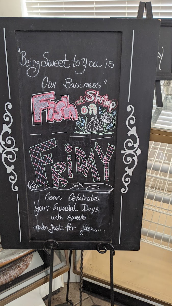 Here, sweet moments often feel like small celebrations: from enjoying a strawberry torte cake with whipped cream to savoring a peanut butter and jelly long john, each bite carries a simple, honest satisfaction. On Fridays, the menu gently shifts with a fish and shrimp special that nods to local tastes and traditions, offering something a bit unexpected alongside the usual baked goods.